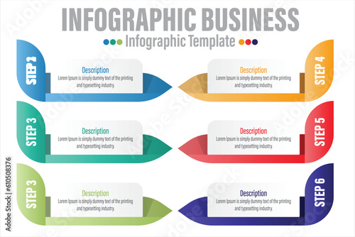 6 Steps, six 6 option Paper note shape elements with steps,road map,options,milestone,timeline,processes or workflow.Business data visualization.Creative step infographic template for presentation.