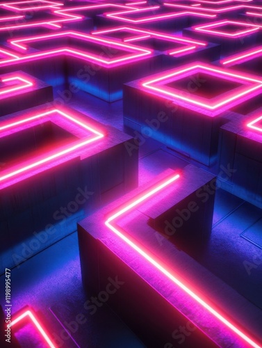 61. Digital marketing strategies visualized as a complex maze of neon light paths