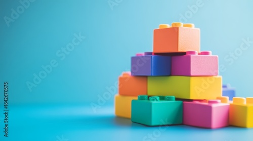 6.Toy Block Podium, Colorful Plastic Bricks Stacked into a Playful Stage, Whimsical Showcase, Kids' Creativity