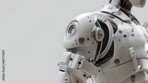 7. "A high-tech exoskeleton suit with detailed mechanical joints and circuitry, set against a neutral background for emphasis on its design