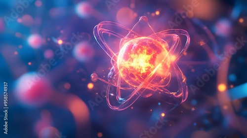 70. Dynamic close-up of a toxic atom with radiant, hazardous molecular formations