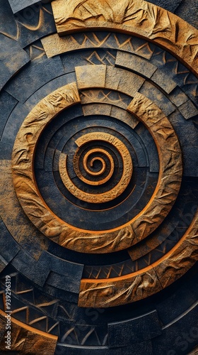 75. Abstract 3D render with layered geometric patterns and a textured ceramic circle background