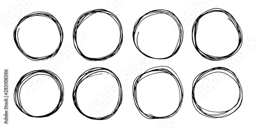 8 hand drawn scribble circles set isolated on white background doodle vector illustration.