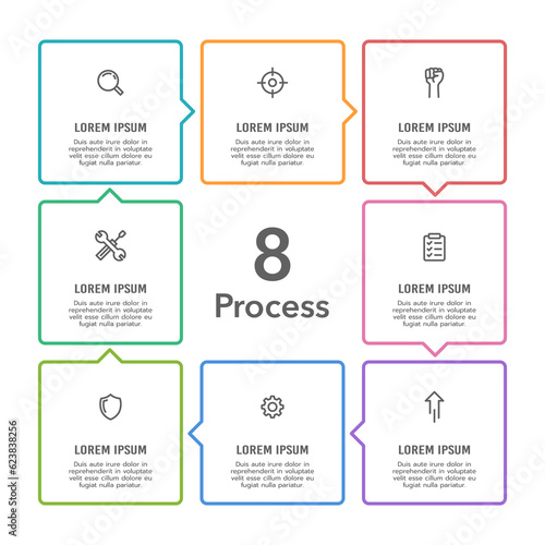 8 Process to success. Infographic square cycle 8 steps. Business presentation. Vector illustration.