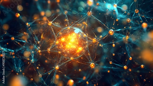 80. Glowing image of a central mineral atom within a complex, vibrant molecular network