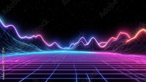 90S Laser Background. Retro 80s Style Neon Grid in Abstract Science Fiction Illustration