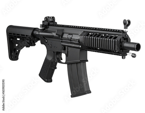 A - Angled Perspective of Armalite AR-10 with Highlights, Isolated on White Background.