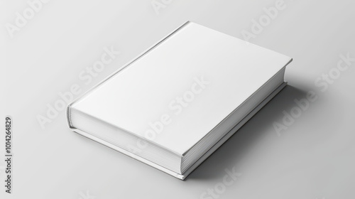 A blank book with a white cover sits elegantly on a gray backdrop, perfect for branding designs.