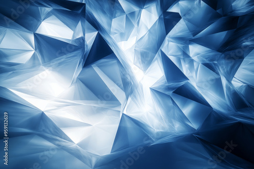 A 3D abstract business background featuring geometric shapes in shades of blue and grey, arranged in a dynamic, flowing pattern. The scene is illuminated with soft, ambient lighting to highlight the