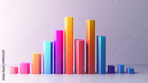 A 3D bar chart with vibrant bars in varying heights, placed on a white background with clean shadows and labels, perfect for visualizing business or financial data.