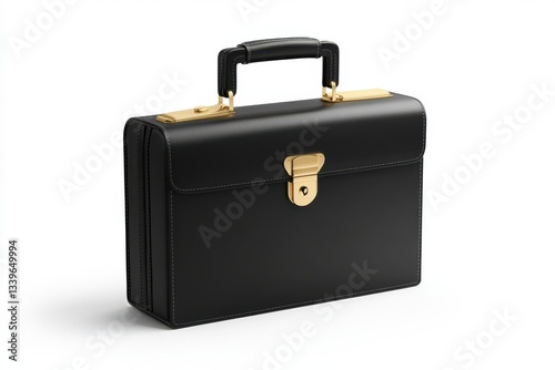 A 3D black briefcase with gold clasps and a sleek handle ideal for business mockup
