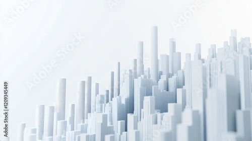 A 3D chart with bars rising dramatically, representing a booming stock market, displayed on a minimalistic white background.