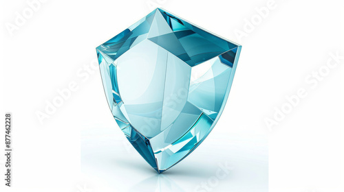 A 3D crystal shield icon stands out against a white background. This vector illustration is perfect for creating designs or user interfaces that convey a sense of protection and safety.