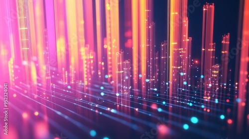 A 3D financial graph with rising bars and glowing data points, representing business growth and success.