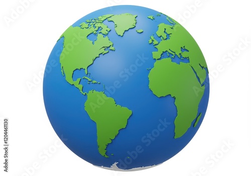 A 3D illustration of a globe with bright blue oceans and vibrant green continents isolated on a white background
