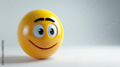 A 3D luxury yellow emoji showing a subtle smile with one eyebrow raised, set against a white backdrop, suggesting curiosity and sophistication