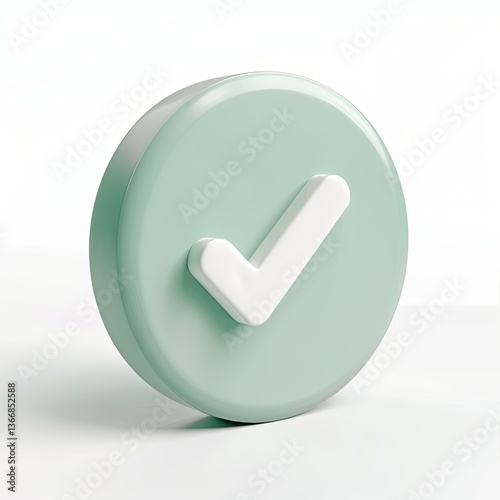 A 3D mint-green circular icon with a white checkmark symbol, representing approval or completion. isolated on white background