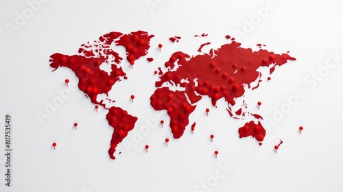 a 3D red world map on a white background, highlighting the depth and dimensionality of continents