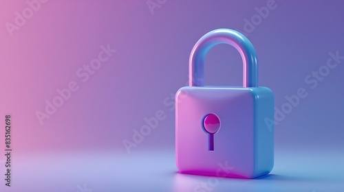 A 3D render of a padlock with a vibrant pink and purple gradient lighting, symbolizing security and protection in digital and physical contexts. 3D Illustration.