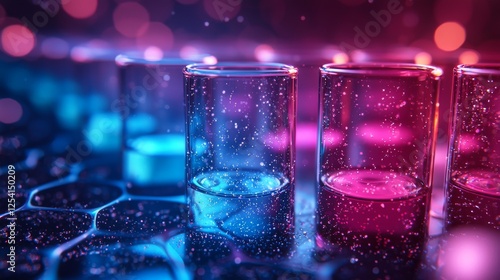 A 3D rendered image of blue laboratory test tubes showing red positive results