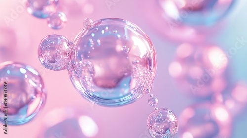 A 3D rendering of molecules suspended in a transparent liquid bubble.