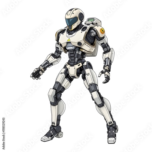 a 3d robot illustrated on white, A futuristic 3D render of a chrome cyborg with robotic hands, showcasing advanced artificial intelligence and mechanical design