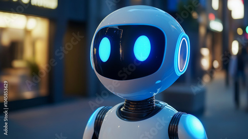 A 3D robot powered by artificial intelligence helps customers by answering questions through a chatbot. This AI assistant uses advanced technology and online communication to provide helpful service.