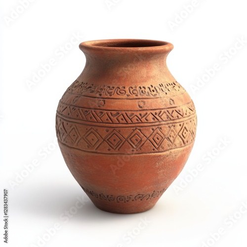A 3D scanned artifact, a small clay pot with intricate patterns, isolated on a white background - Generative AI