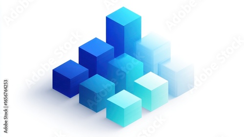 A 3D stacked column chart clipart, data element, isometric render, blue gradient, isolated on white background