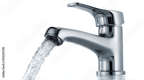 A 4K photo of water Flowing from a Modern Faucet on white background.