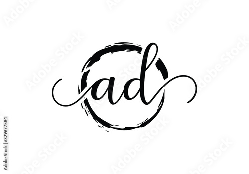 A and D Initial handwriting logo design with brush circle. handwritten logo for fashion, team, wedding, luxury logo.