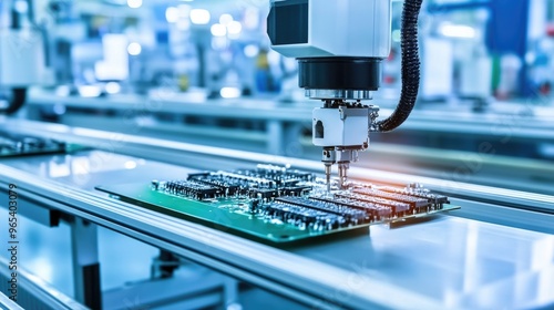 A assembly line producing OEM electronic components, with detailed focus on automation.