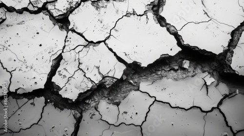 A backdrop in black and white, showcasing a worn-out appearance with cracks, stains, and chips