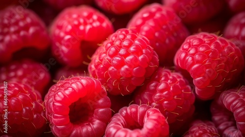 A background composed of fresh, juicy, and ripe raspberries, captured in striking macro photography with a shallow depth of field.