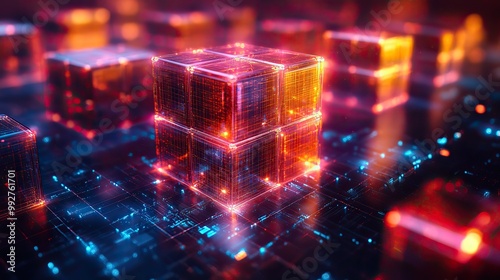A background of interconnected cubes symbolizes the complexity and structure of modern digital technology.