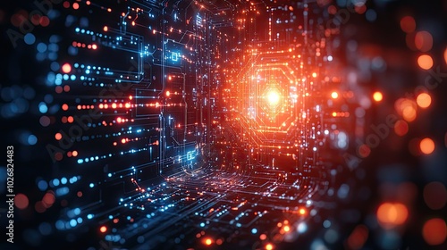 A background showcasing digital technology and science, highlighting modern and innovative elements.