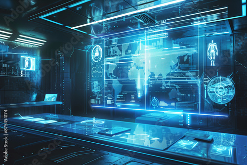 a backstage area with holographic projectors that can generate 3D models and visual aids for the presenter to use during the presentation, adding a futuristic touch