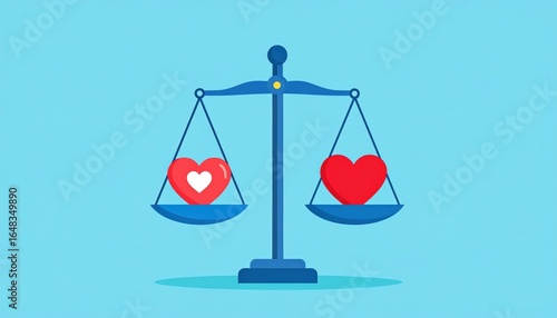 A balanced scale depicts two hearts, one larger and red, the other smaller and white.