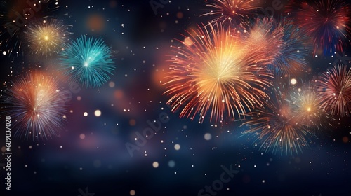 A banner background with fireworks, a festive, new year celebration backdrop - AI Generative