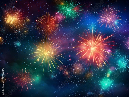 A banner background with fireworks, festive, new year celebration backdrop - AI Generative