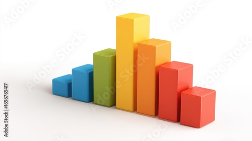 A bar chart clipart, analytics element, geometric 3D illustration, vibrant primary colors, isolated on white background.