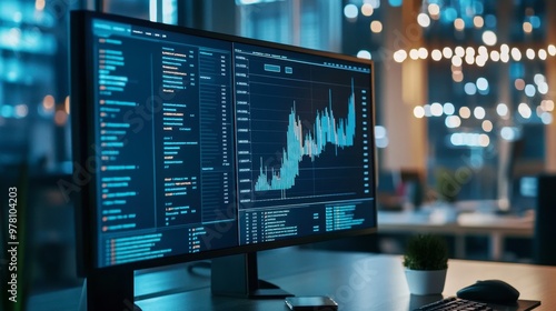 A bar graph displayed on a computer monitor, showing performance metrics across multiple departments.