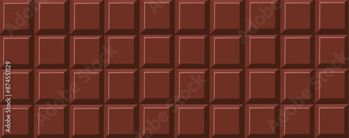 A bar of dark or milk chocolate. Brown seamless background. Geometric square chocolate pattern. Abstract wallpaper design. Vector illustration.