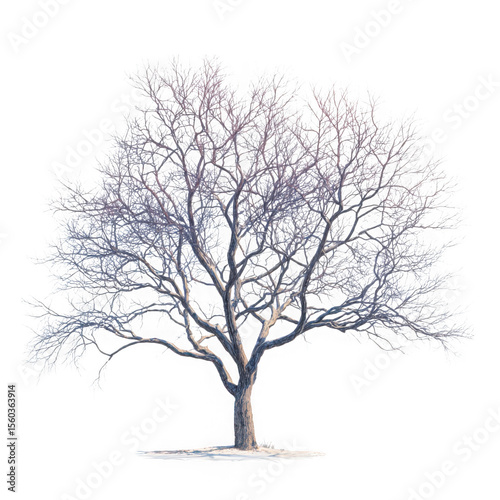 A bare deciduous tree with intricate branches stands isolated on transparent background