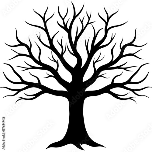 A bare tree silhouette with intricate branches isolated on white
