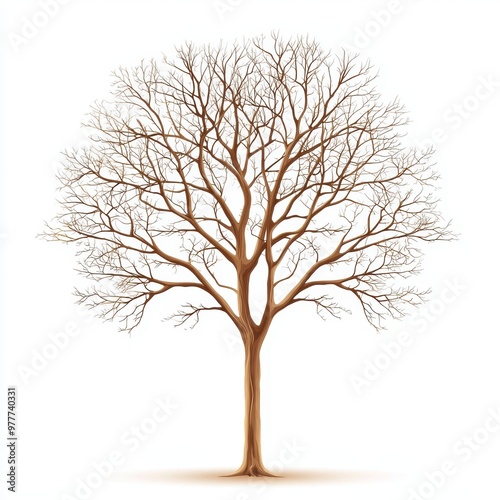 A bare winter tree with intricate branches, symbolizing the changing seasons, isolated on white background
