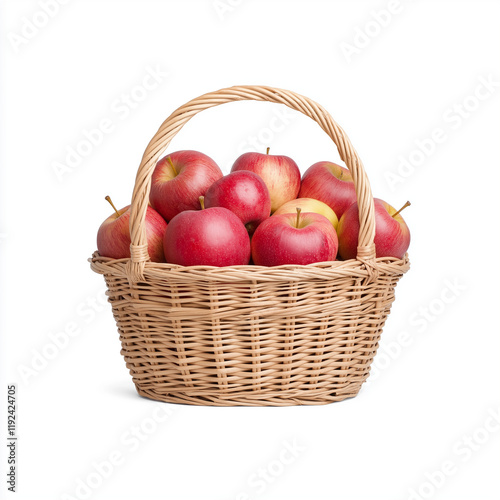 A basket full of freshly picked apples, rustic style, detailed digital painting, vibrant colors, isolated on white background