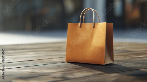 A beautiful 3D rendering of a brown ecological shopping bag on a wooden table, white background or transparent png. offering clear copy space for branding and promotional use. copy text space