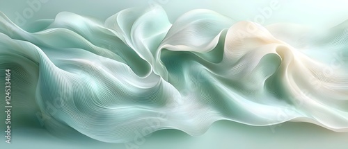 A beautiful abstract wave of soft mint green and cream hues intertwines gracefully, creating a serene and calming atmosphere, perfect for modern decor or digital designs.