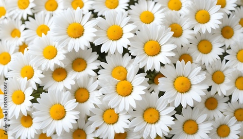 A beautiful and full display of white daisies with their bright yellow centers in bloom.